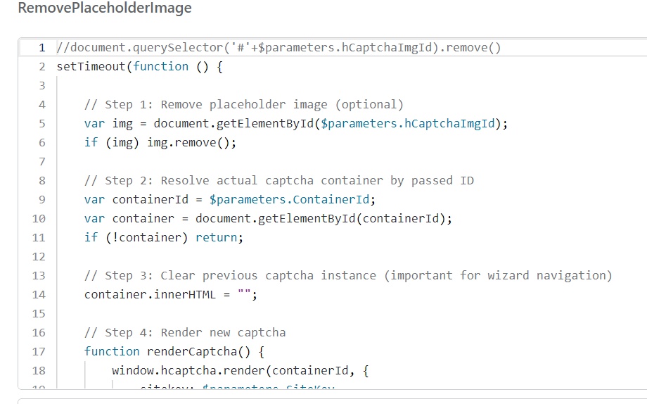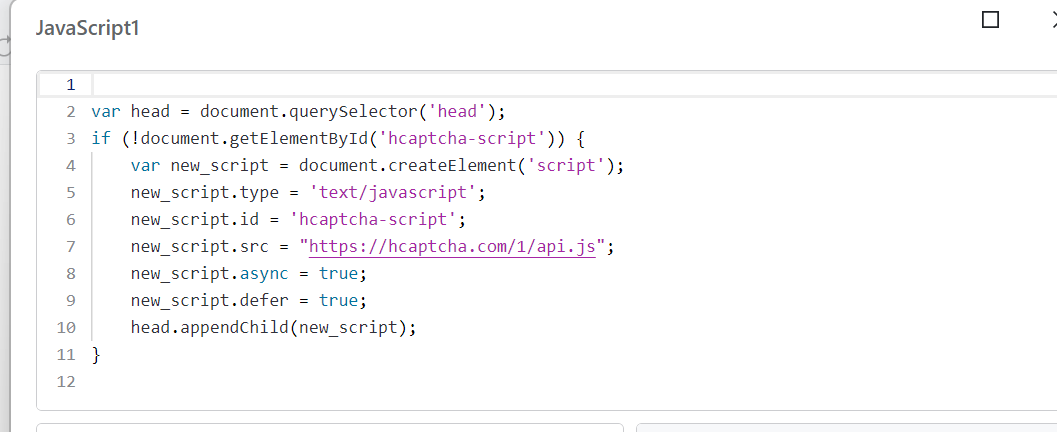 For external URLs like hCaptcha, what you are doing (creating a element and appending it to document.head) is the correct approach. OutSystems will send your page framework, and your JS adds the script into the at runtime.